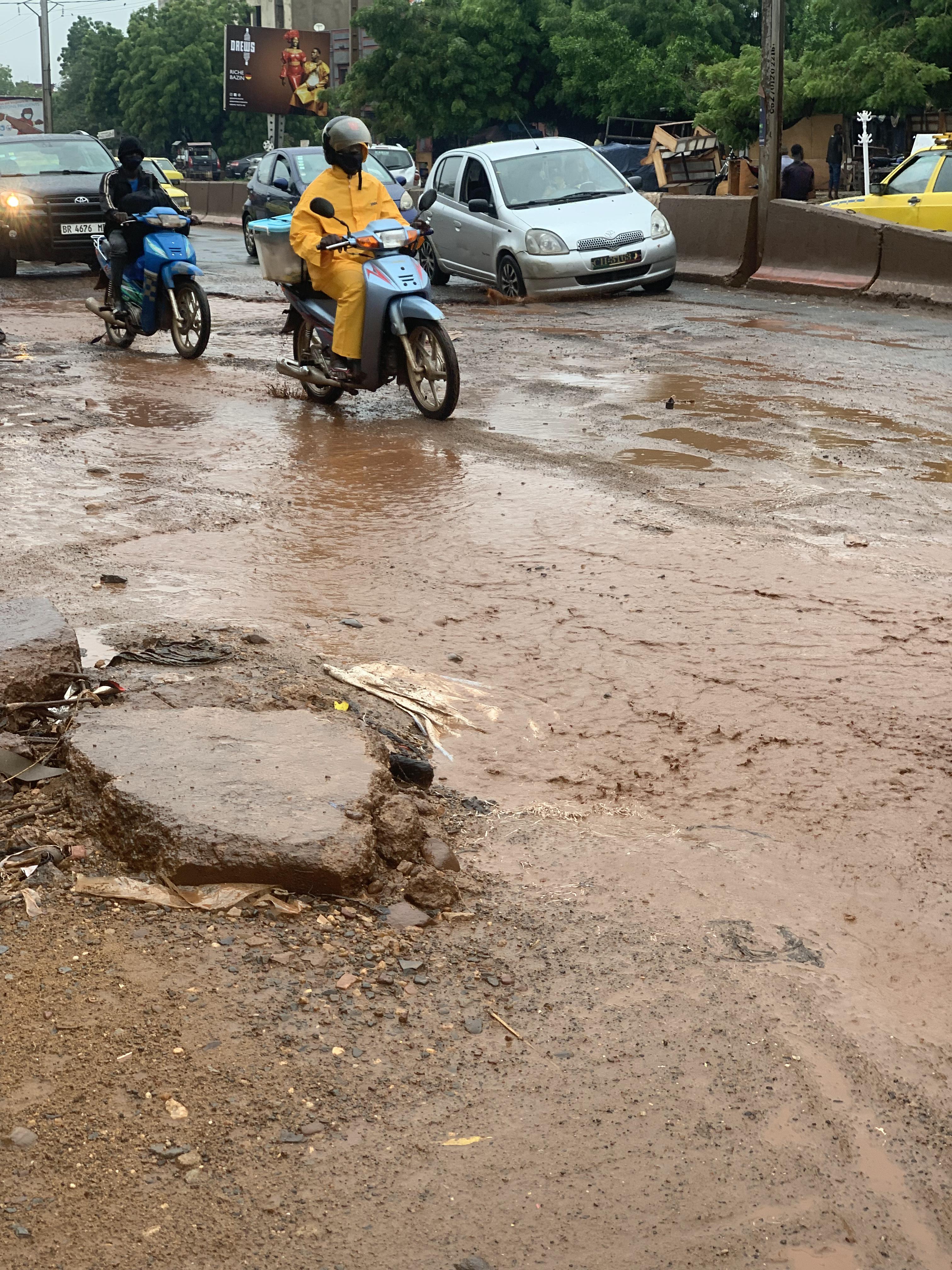 Ahmed Tounkara, un étudiant trempé de la tête aux pieds, a préféré longer les abords de la route, moins profonds. « La saison des pluies est un cauchemar pour nous. L’état des routes, un peu partout, est catastrophique. Je peux m’estimer chanceux, il y en a qui perdent la vie sur nos routes… », affirme-t-il.