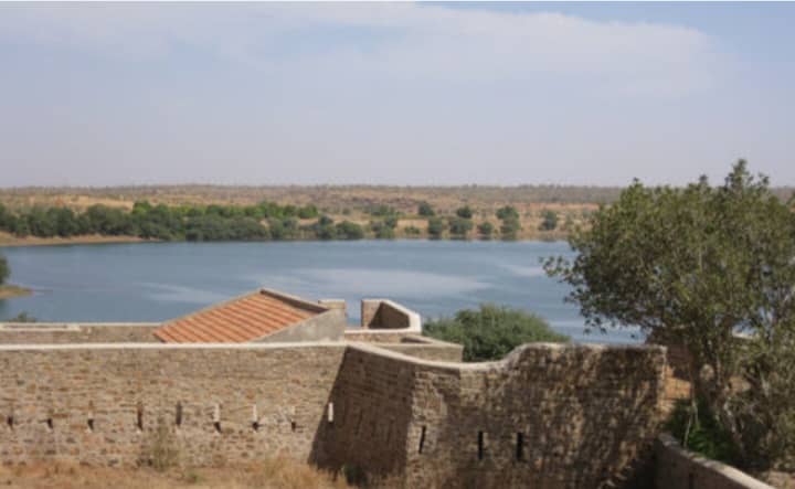 Bréhima nous accueille en souriant, le téléphone dans la main droite, pantalon noir, chemisette multicolore et sandales chocolat, sous un arbre de la cour et devant la porte de la salle d’orientation du fort de Médine. Ce 26 décembre au matin, nous sommes en sa compagnie sur le site du Fort de Médine, un monument du patrimoine national, situé dans la commune de Hawa Dembaya, à 12 Km de Kayes. Après un briefing, Bréhima Sissoko nous dirige vers le premier édifice construit au Mali par le général Faidherbe en 1863 et entreprend de nous raconter l’histoire de ce site.