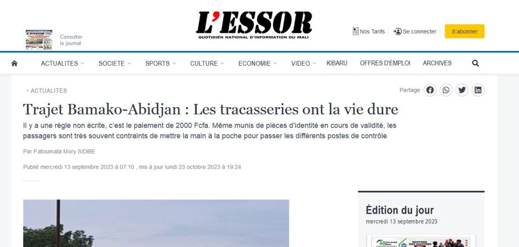 Cet article a été publié par le quotidien L’Essor le 15/09/2023
