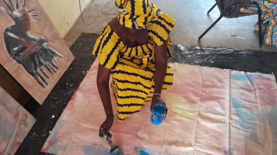 La plasticienne s’investit totalement la création, mais sans se détacher du réel : au Mali, être épouse, mère, et artiste, ne va pas de soi. Mais sa passion la soutient.